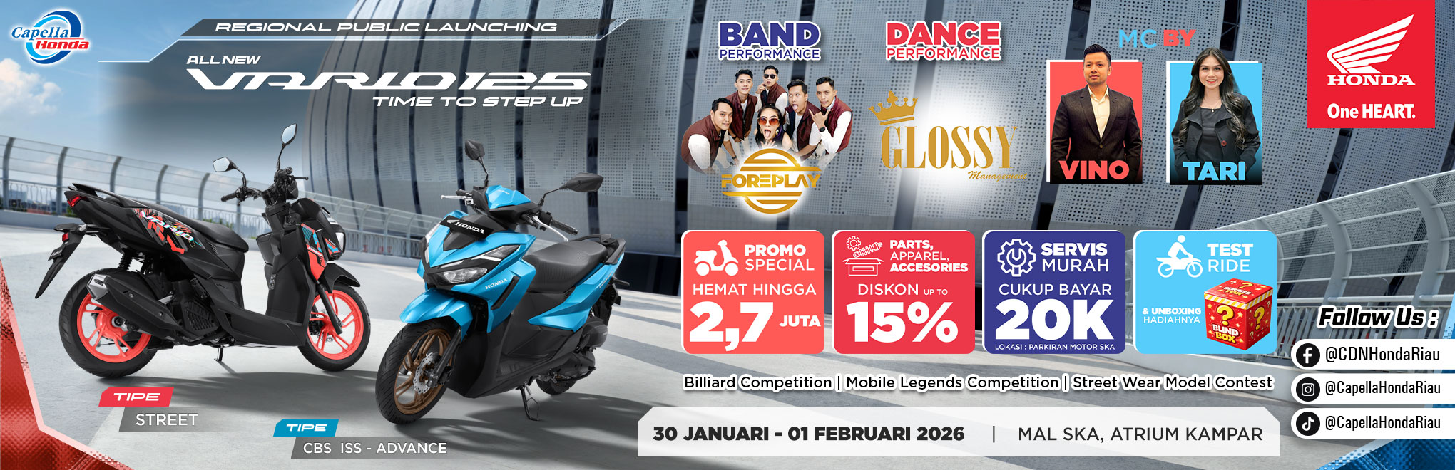 Sabtu, 24 Januari 2026Sepekan Jelang Launching di Pekanbaru, Inden All New Honda Vario 125 Lebih dari 130 Unit