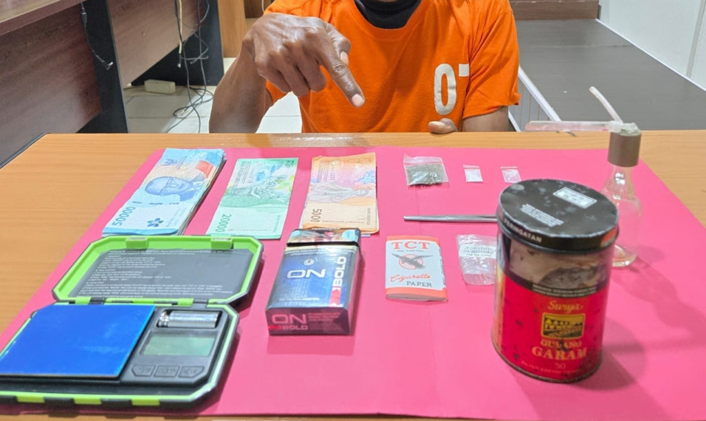 Polsek Bukit Batu Polres Bengkalis amankan seorang tersangka diduga pengedar perusak saraf jenis sabu dan ganja.