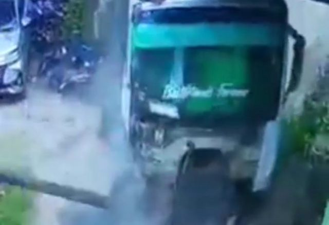Dari video yang terekam, sebelum menggilas puluhan sepeda motor, truk naas itu sempat menabrak bagian belakang truk yang melintas di seberangnya. Warga yang sedang berkumpul berhamburan menyelamatkan diri.
