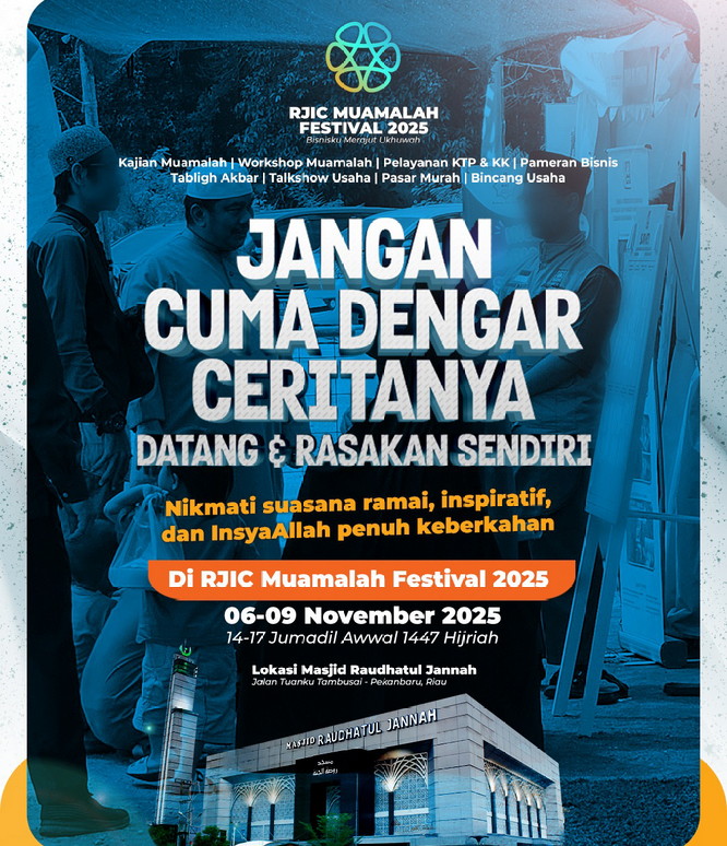 Selasa, 04 Nopember 2025RJIC Muamalah Festival 2025 Dimulai Lusa; Pasar Sembako Murah, Pameran Produk dan Kuliner Sehat