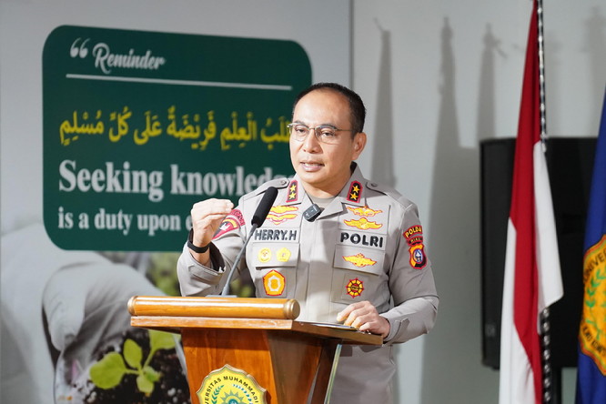 Riauterkini - PEKANBARU - Kapolda Riau, Irjen Pol. Herry Heryawan, SIK, MH, M.Hum. menjadi keynote speaker dalam kegiatan Baitul Arqam & Pembekalan Purna Studi Bagi Calon Wisuda XXVIII Universitas Muhammadiyah Riau (UMRI) dengan tema "Mewujudkan Generasi Inovatif, Inspiratif, Berdaya Saing, dan Mencerahkan Semesta". Kegiatan ini dilangsungkan di Auditorium Lantai 3 Gedung Rektorat UMRI, Jalan Tuanku Tambusai, Pekanbaru, Sabtu pagi (19/04/25).