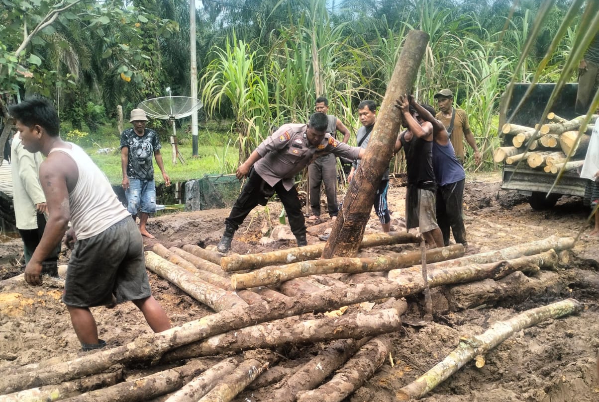 Semangat Gotong Royong, Bhabinkamtibmas Kepenghuluan Putat Turun Langsung Perbaiki Jalan Rusak