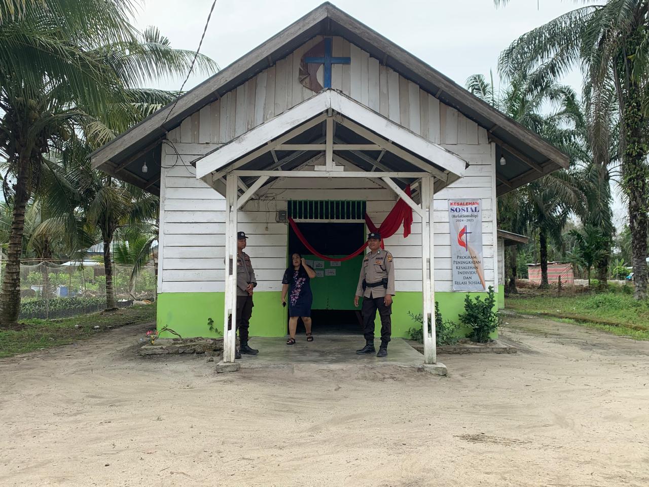 Riauterkini-TANAHPUTIH-Dalam rangka menjaga keamanan dan ketertiban selama pelaksanaan ibadah hari Minggu, Polsek Tanah Putih menggelar kegiatan patroli dan pengecekan di sejumlah gereja di wilayah hukumnya, Minggu (27/4/2024) sekitar pukul 11.00 WIB hingga selesai.