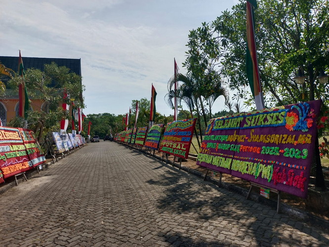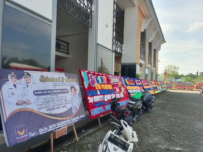 Jelang Pelantikan Bupati-Wabup Siak, Seratusan Papan Bunga Berjejer di Kantor DPRD