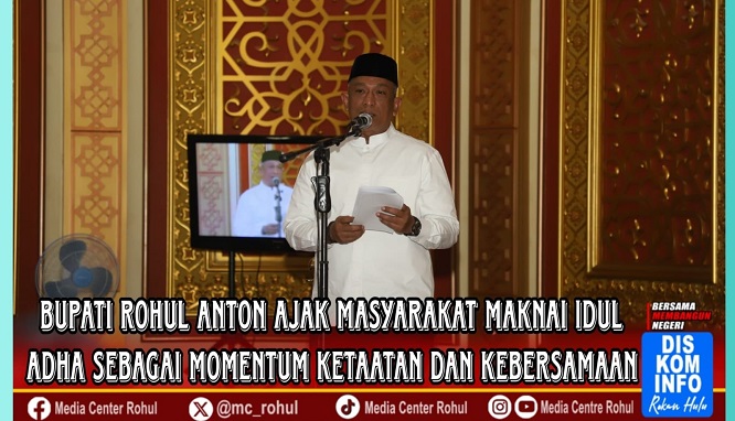 Lebih lanjut, Anton menyampaikan bahwa keberagaman budaya dan suku di Kabupaten Rokan Hulu merupakan anugerah yang harus dijaga melalui semangat kebersamaan dan persaudaraan. Ia berharap Idul Adha menjadi sarana untuk mempererat tali silaturahmi dan menguatkan solidaritas sosial di tengah masyarakat.