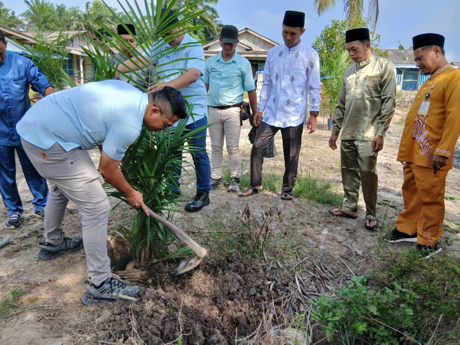 Pada kegiatan tersebut, sebanyak 220 bibit kelapa sawit ditanam di lahan Tanah Kas Desa (TKD) Simpang Perak Jaya sebagai langkah awal pelaksanaan program.