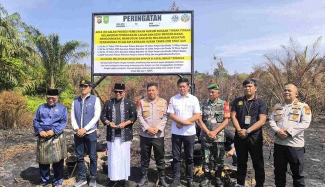 Wujudkan Komitmen Cegah Karhutla, Kapolres dan Forkopimda Pelalawan Pasang Plang Larangan Bakar Lahan