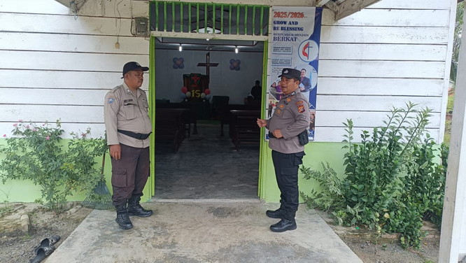 Polsek Tanah Putih Patroli, Pastikan Ibadah di Gereja Aman dan Lancar