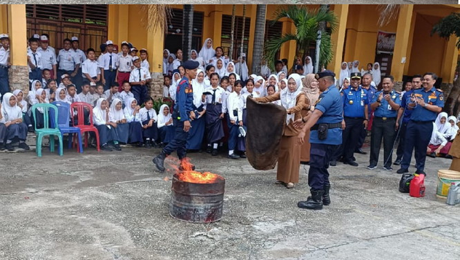 Damkar Pekanbaru Edukasi Pelajar Tiga Sekolah Cegah Kebakaran Secara Aman