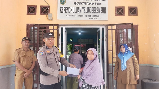 Polsek Tanah Putih Dampingi Penyerahan BLT Dana Desa kepada 29 Warga Teluk Berembun