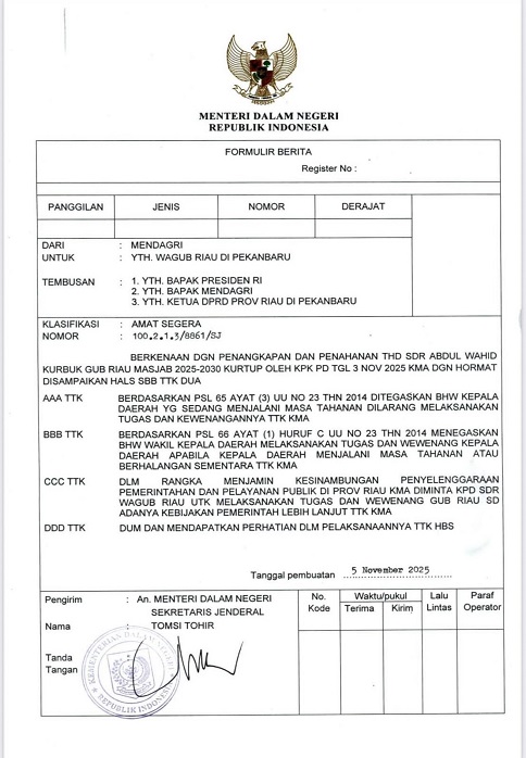 Wagub Riau SF Hariyanto Resmi Ditunjuk Jadi Plt Gubernur Riau