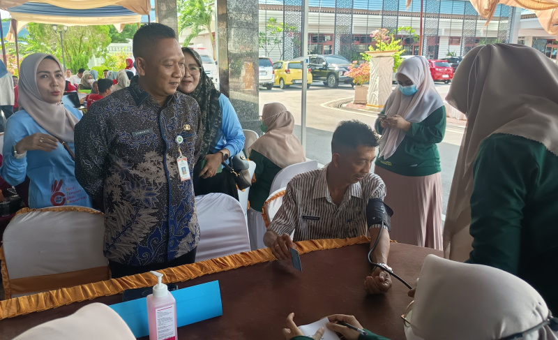 “Secara keseluruhan di semua UPT, target peserta CKG hari ini mencapai 6.126 orang. Pemeriksaan ini mencakup deteksi penyakit kronis, kanker, gula darah, dan kolesterol. Kita harapkan kegiatan ini merangsang masyarakat untuk rutin melakukan pemeriksaan kesehatan secara gratis di UPT Puskesmas. ASN juga harus menjadi teladan dalam melakukan CKG berkala,” ujarnya.