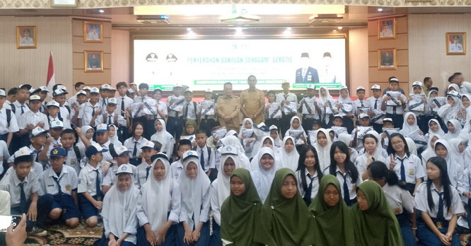 Tunaikan Janji Kampanye, Bupati Rohil Bagikan Seragam Gratis untuk Murid SD dan SMP