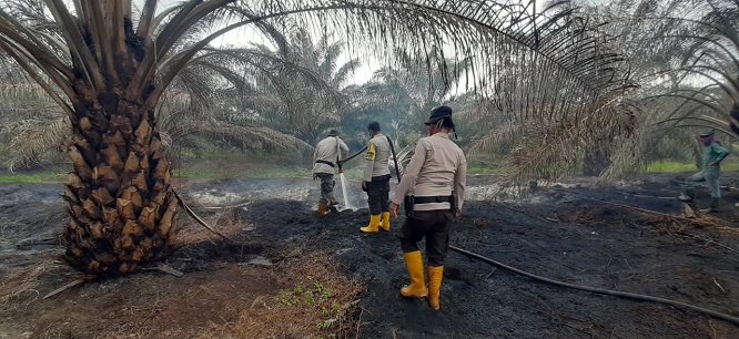 Polsek Tanah Putih Dinginkan Lahan Gambut yang Terbakar Seluas 1,5 Hektare di Mumugo