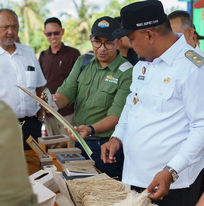 Pada kesempatan tersebut, Wakil Bupati Siak juga melihat langsung bagaimana limbah nenas yang sebelumnya tidak dimanfaatkan dapat disulap menjadi berbagai produk menarik. Serat dari daun nenas diolah menjadi beragam kerajinan, mulai dari bingkai foto, kotak pensil, buku catatan, hingga paper bag.