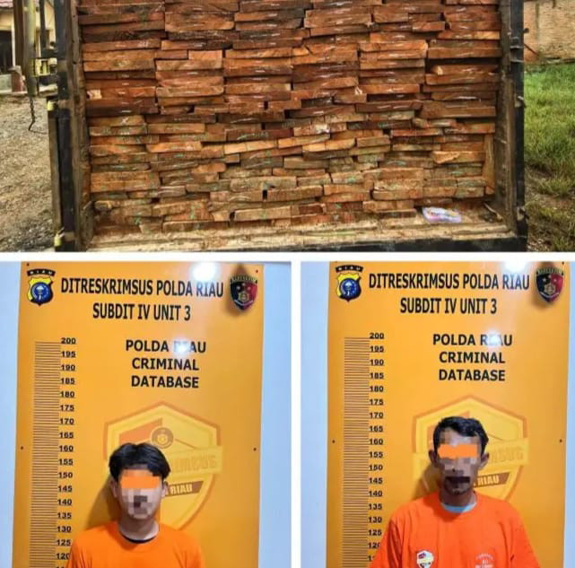 Bawa 10 Kubik Kayu Ilegal, Dua Pria Ditangkap Polisi di Rohul