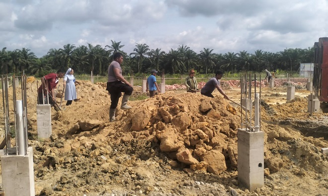Bhabinkamtibmas Kepenghuluan Putat Ikut Gotong Royong Bangun Gereja Kristus Raja