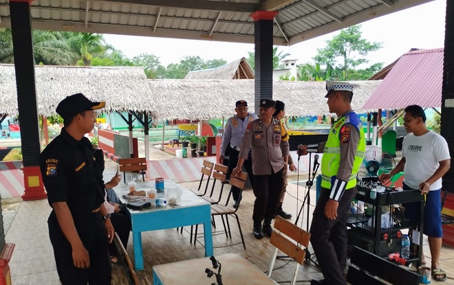 Riauterkini-PELALAWAN — Pos Pengamanan (Pos Pam) Nilam Sari Ukui melaksanakan patroli di objek wisata Kolam Renang Gembiro Ati, Desa Bukit Gajah, Kecamatan Ukui, Kabupaten Pelalawan, Sabtu, 27 Desember 2025. Kegiatan ini merupakan bagian dari Operasi Lilin Lancang Kuning 2025 untuk menciptakan situasi keamanan dan ketertiban masyarakat (kamtibmas) yang aman dan kondusif.
