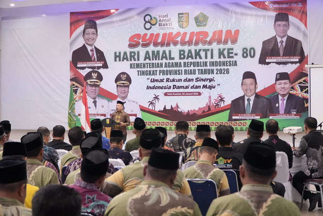 Hal itu disampaikan, Murali, saat acara Syukuran dan Ramah Tamah sempena Hari Amal Bakti ( HAB) Kementrian Agama Tingkat Provinsi Riau, Jumat (2/1/2026) tadi malam di Pendopa Rumah Dinas Bupati Kuansing.