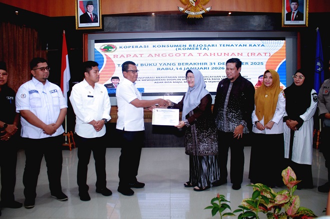 Riauterkini-PEKANBARU-Kepercayaan disiplin anggota menciptakan pondasi kuat menuju koperasi yang maju mandiri dan sejahtera. Hal ini disampaikan Ketua Koperasi Komerta Hj Elwi, SPd pada saat Koperasi Konsumen Rejosari Tenayan Raya (Komerta) Pekanbaru melaksanakan rapat akhir tahun (RAT) tahun buku 31 Desember 2025 di Gedung Balai Penjamin Mutu Pendidikan (BPMP) Riau, Pekanbaru, Selasa (14/1/2026).
