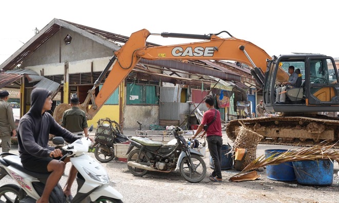 Sesuai Mekanisme, Penertiban Kios Pasar Bawah Telukkuantan Gunakan Tiga Alat Berat