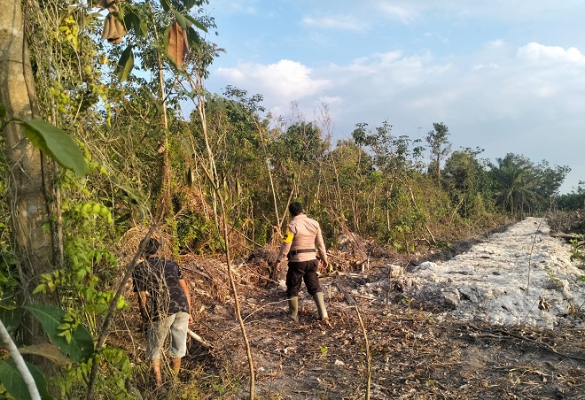 Antisipasi Karhutla, Bhabinkamtibmas Polsek Tanah Putih Laksanakan Patroli Lahan Warga
