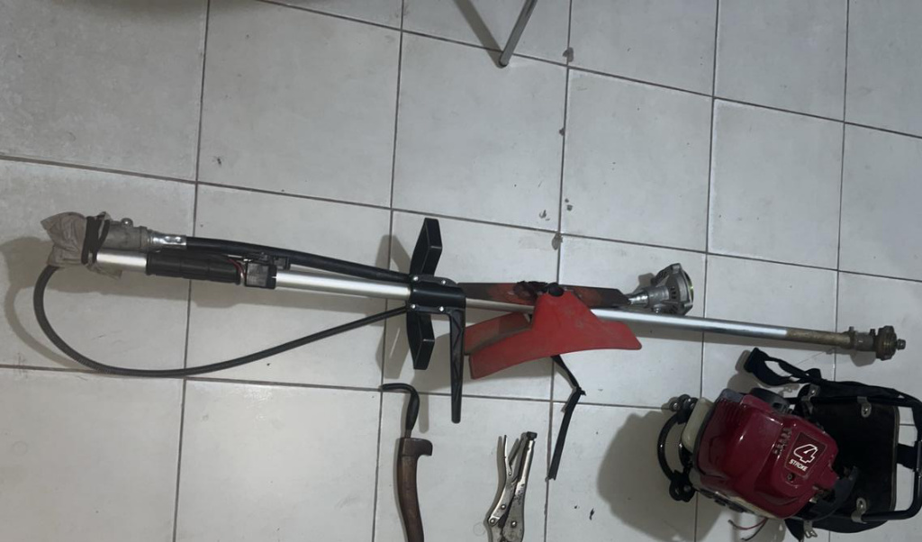 Dari tangan terduga pelaku, polisi mengamankan sejumlah barang bukti berupa satu unit mesin rumput, satu unit sepeda motor, satu bilah pisau, serta satu buah tang.