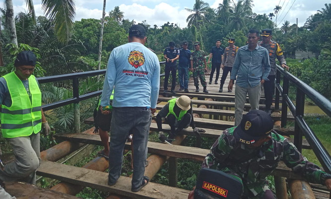 Bupati Kuansing Puji Langkah Cepat TNI- Polri Perbaiki Jembatan Desa Sangau