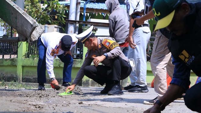 Tekan Angka Kecelakaan, Forum Keselamatan Lalu Lintas Inhil Tambal Jalan Berlubang di Kota Tembilahan
