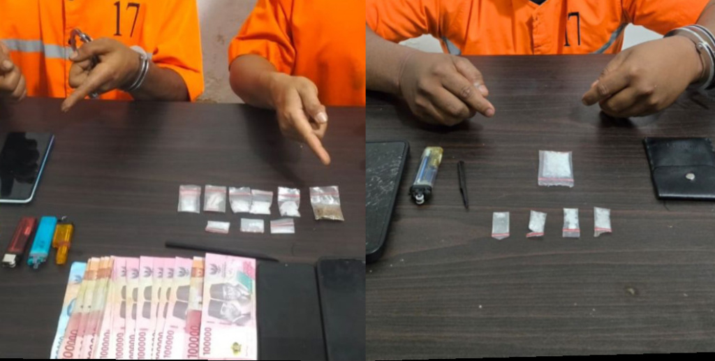 Dalam penggerebekan tersebut, petugas mengamankan dua tersangka masing-masing berinisial EP (27) dan ES (24). Dari lokasi kejadian, polisi turut menyita sejumlah barang bukti berupa 8 paket kecil sabu seberat sekitar 2,40 gram 3 paket sedang sabu seberat sekitar 6,88 gram 1 bungkus ganja kering seberat 0,86 gram, 1 unit timbangan digital, uang tunai Rp1.650.000 hasil penjualan, 6 plastik bening pembungkus, 3 HP, 1 set alat hisap (bong).