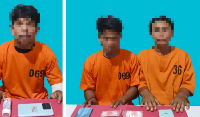 Barang bukti lain yang disita antara lain timbangan digital, dua bal plastik bening klip merah, satu sendok dari sedotan plastik, dua unit handphone Android, dan satu unit sepeda motor Honda Supra X hitam merah tanpa nomor polisi.