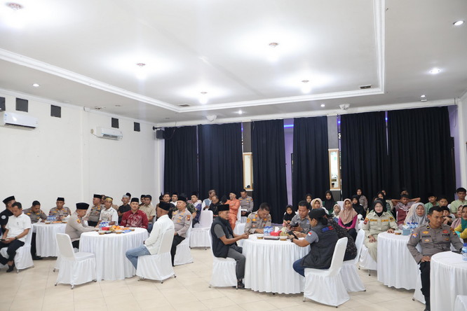 Kapolres Pelalawan AKBP John Louis Letedara, S.I.K., hadir bersama Wakapolres Pelalawan Kompol Asep Rahmat, S.H., S.I.K., M.M., serta para pejabat utama Polres Pelalawan. Acara juga dihadiri penceramah Ustad Ashabul Yamin, S.Ag., dan sejumlah pimpinan organisasi pers di daerah tersebut.