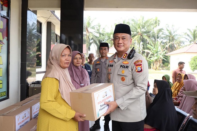 Kapolres Rokan Hilir Salurkan Paket Sembako untuk Kaum Duafa di Tanah Putih Tanjung Melawan
