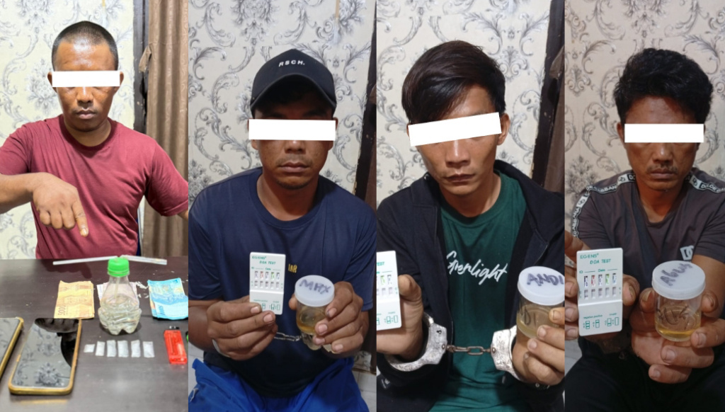 “Empat orang laki-laki berhasil diamankan di lokasi. Dari hasil pemeriksaan awal, satu orang diduga sebagai pengedar, sementara tiga lainnya merupakan pengguna,” ungkap Kapolsek.