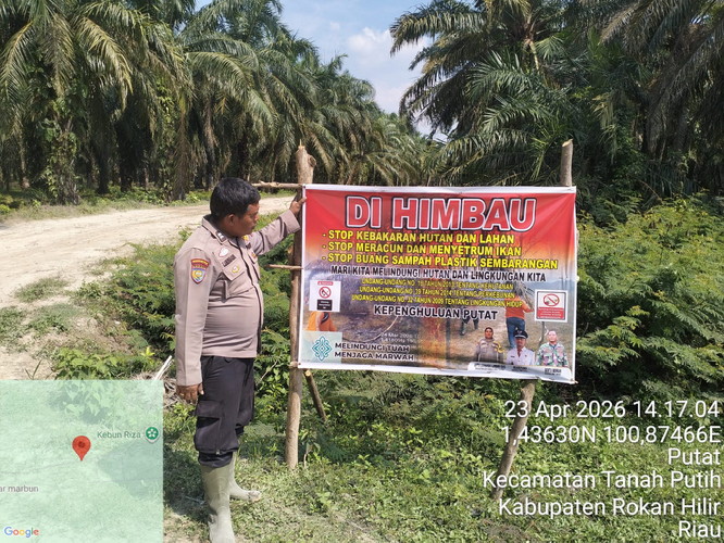 Antisipasi Karhutla, Polisi Edukasi Warga Lewat Pemasangan Spanduk di Pinggir Sungai Rokan