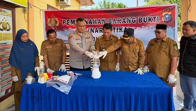 Komitmen Berantas Narkoba, Polsek Pujud Musnahkan Barang Bukti Sabu