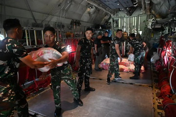 | Sabtu, 13 Desember 2025 Lanud Rsn Kembali Kirimkan Bantuan Makanan dan Obat untuk Korban Bencana di Sumatera