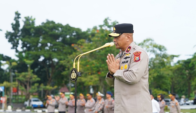 | Selasa, 13 Januari 2026 Apel Terakhir Wakapolda Riau, Brigjen Jossy Sampaikan Pesan Perpisahan
