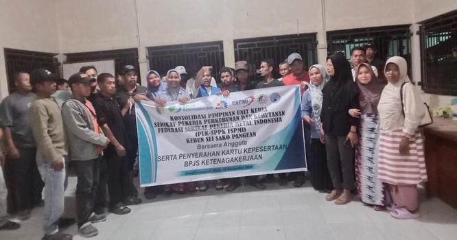 | Jumat, 21 Nopember 2025 PUK SPPK FSPMI Kebun Sei Sako Serahkan Kartu BPJS Ketenagakerjaan Bentuk Komitmen Lindungi Hak Pekerja