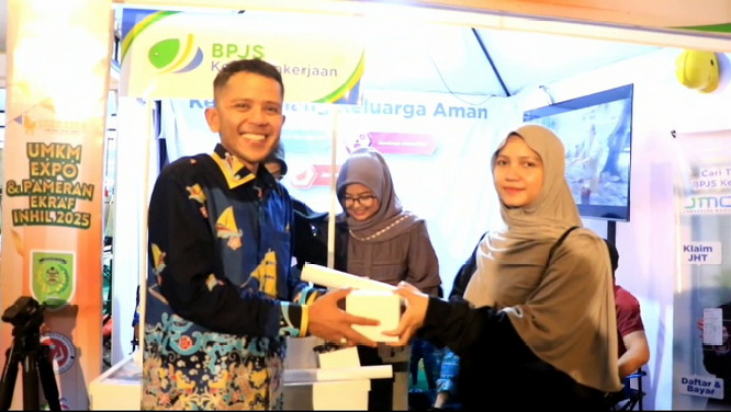 | Kamis, 11 Desember 2025 Stand BPJS Ketenagakerjaan Cabang Tembilahan Hadir Beri Pelayanan di UMKM Expo & Ekraf Inhil 2025