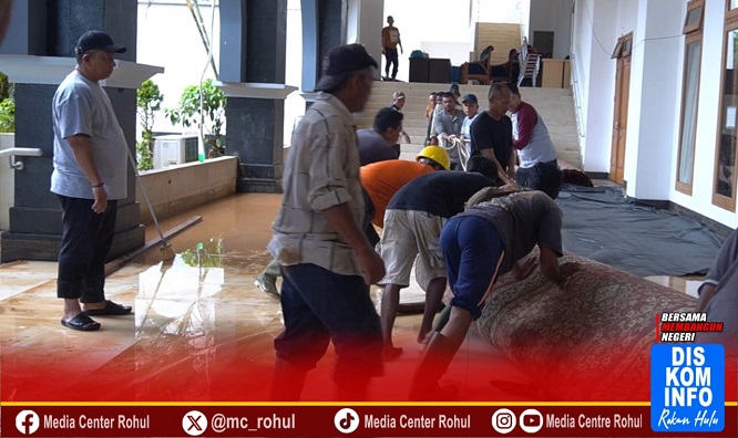 | Minggu, 16 Nopember 2025 Air Drainase Meluap, Basement Masjid Islamic Center Pasir Pengaraian Terendam Banjir