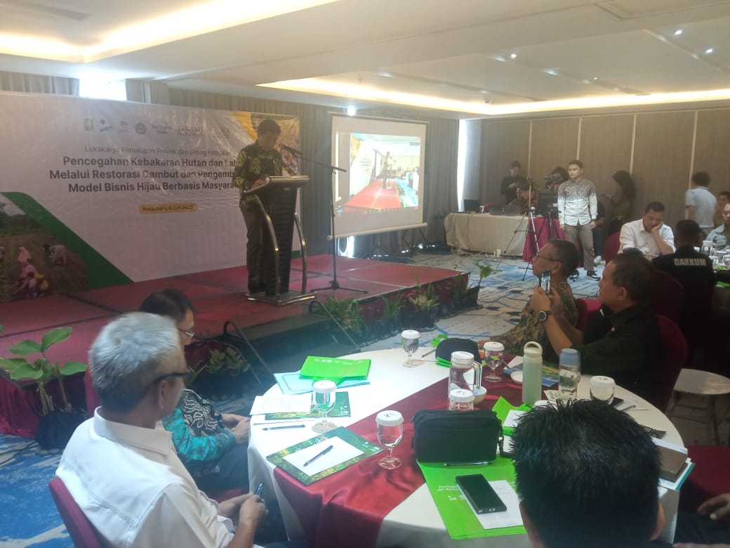 Lokakarya Penutupan Proyek dan Dialog Kebijakan dengan tema Pencegahan kebakaran Hutan dan Lahan Melalui Restorasi Gambut dan Pengembangan Model Bisnis Hijau Berbasis Masyarakat di Pekanbaru merupakan bagian dari riset aksi partisipatif pencegahan Karhutla dan restorasi gambut berbasis masyarakat di Kampung Kayu Ara Permai dan Penyengat, Kabupaten Siak.
