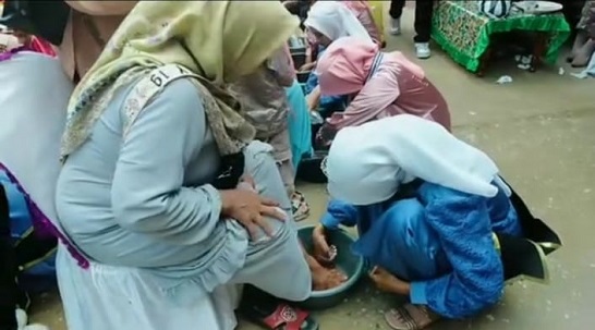 Rayakan Kelulusan, Murid Sekolah Islam Alhusniyah Reteh Basuh Kaki Orang Tua