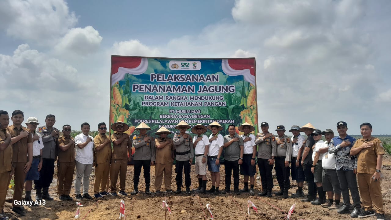 Riauterkini-PELALAWAN-PT. Musim Mas melaksanakan kegiatan penanaman jagung serentak di Estate 1 Desa Pesaguan, Kecamatan Pangkalan Lesung, Kabupaten Pelalawan, sebagai bagian dari kontribusi perusahaan terhadap ketahanan pangan, Senin (10/2/2025). Kegiatan ini bekerja sama dengan Polres Pelalawan dan pemerintah Daerah Kabupaten Pelalawan.