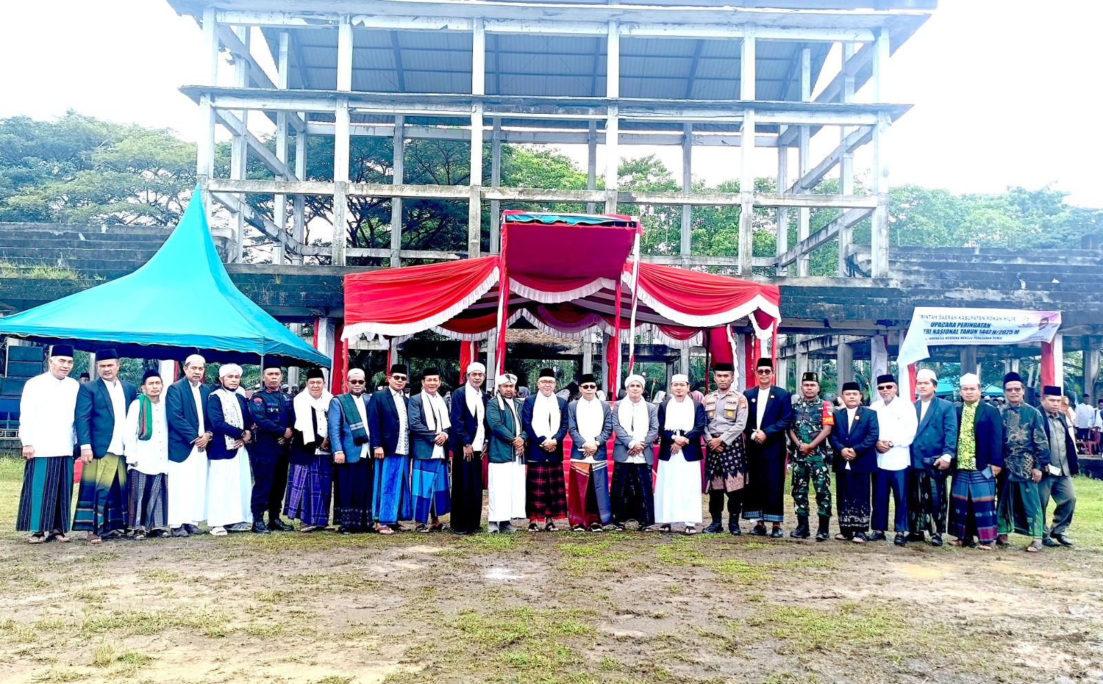Riauterkini-KUBU-Gerimis tipis menyelimuti langit Rantau Panjang Kiri, Kecamatan Kubu, Kabupaten Rokan Hilir, pada Rabu (22/10/2025) pagi. Meski lapangan Stadion Mini tempat upacara digelar tampak becek, semangat lebih dari 700 santri dari 19 pondok pesantren tak sedikit pun surut. Mereka datang dengan truk dan bus, sebagian menempuh perjalanan jauh, untuk merayakan Hari Santri Nasional ke X yang tahun ini mengusung tema penuh makna “Mengawal Indonesia Merdeka Menuju Peradaban Dunia.”