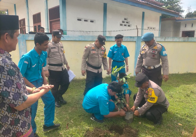 Gelar Green Policing, Polsek Tanah Putih Tanam Pohon Buah di SMAS Darul Ulum Sintong Makmur