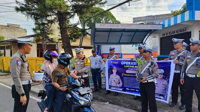 Hadiahi Bibit Pohon, Satlantas Polres Inhu Apresiasi Pengendara Tertib Berlalulintas