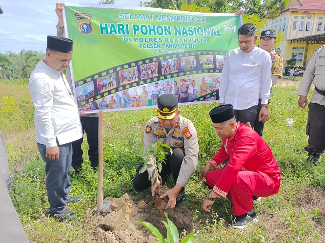 Polsek Tanah Putih Dukung Gerakan 21.000 Pohon Polda Riau di Hari Pohon Nasional 2025