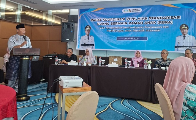 Riauterkini - PEKANBARU – Pemerintah Kota (Pemko) Pekanbaru menggelar rapat koordinasi (rakor) terkait standarisasi Ruang Bermain Ramah Anak (RBRA) di Hotel Grand Central, Jalan Jenderal Sudirman, Jumat (12/12/2025).