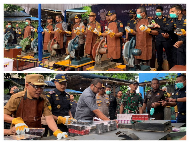 Bea Cukai Tembilahan Musnahkan Jutaan Batang Rokok Illegal dan Ribuan HP Merk iPhone Berbagai Tipe
